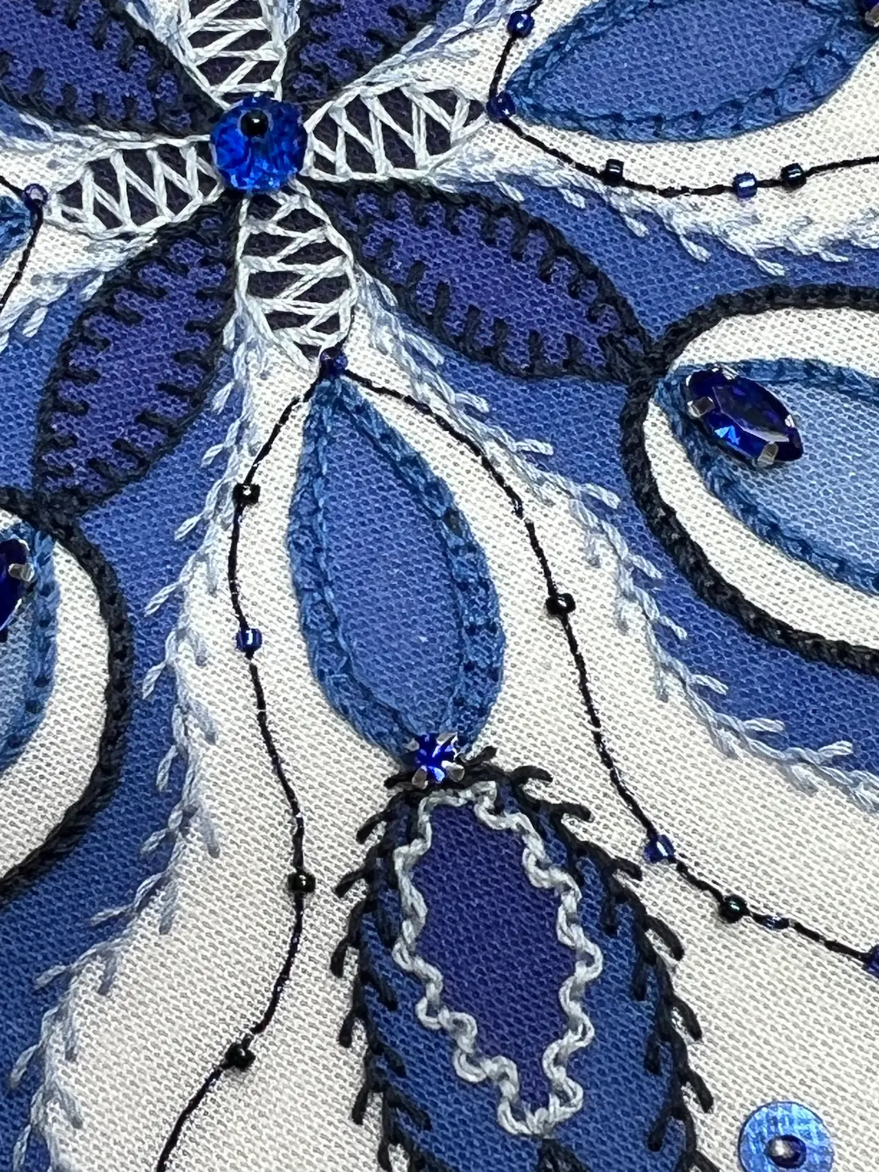 le dessin est imprimé dans les tons de bleus (photo en galerie)