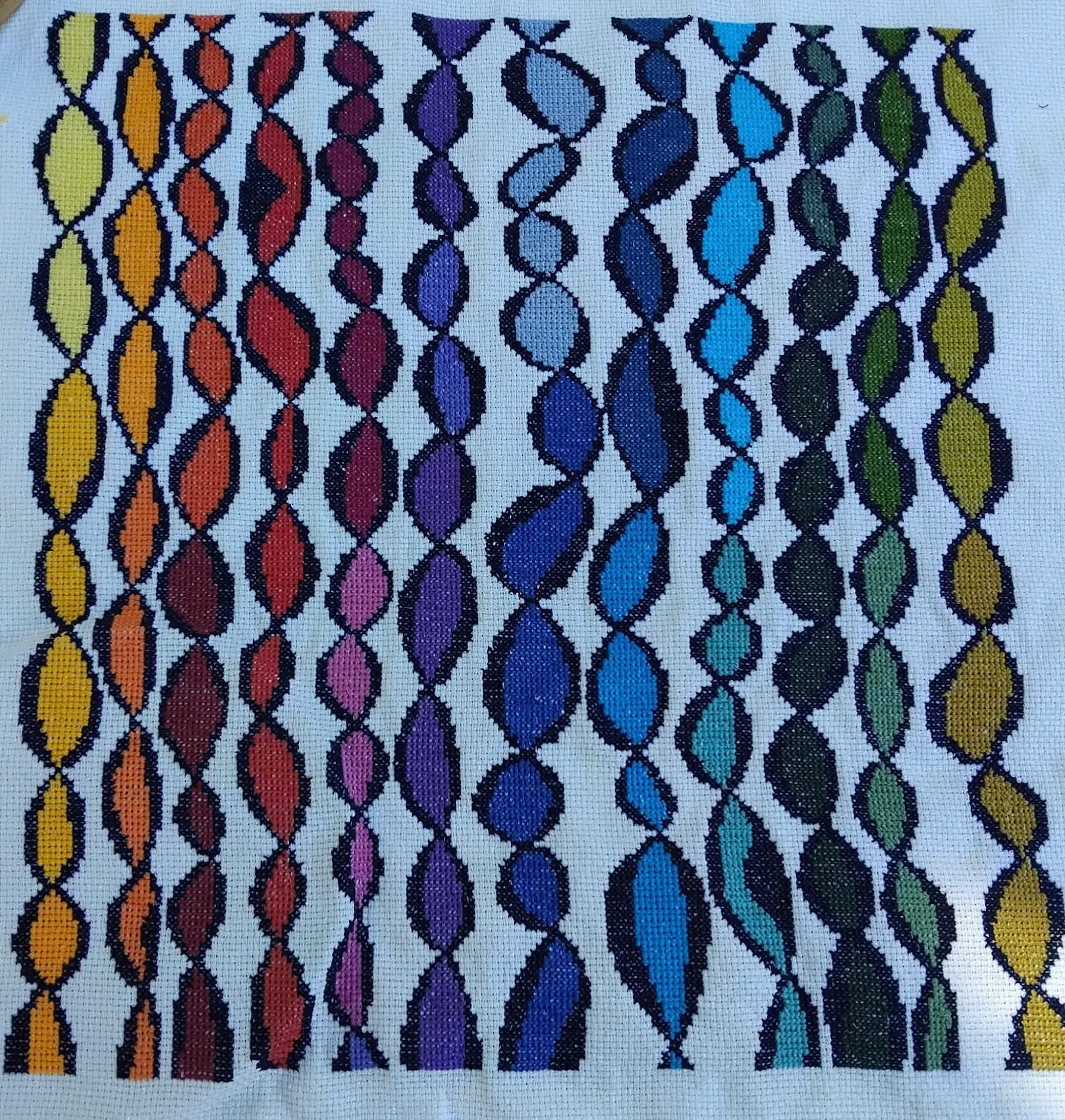 soit environ 21 x 32 cm en brodant sur du lin ou de l’étamine 12,6 fils type Zweigart Belfast ou Murano en considérant qu’une case de la grille fait 2/2 fils